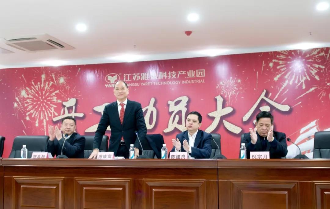 一元復始,萬象更新。2019年2月15日上午8時30分,集團與江蘇雅泰科技產業(yè)園分別在上海與宿遷兩地順利召開了新春開工動員大會,董事長陳康富攜集團公司總裁班子成員向參會的各部門各車間員工拜年,向大家送去新春祝福和美好祝愿。